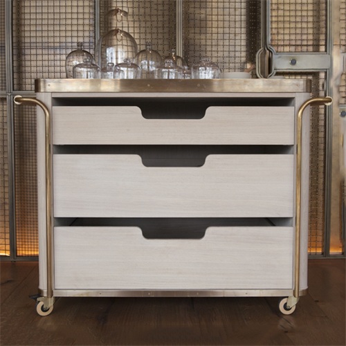 餐廳時(shí)尚不銹鋼實(shí)木帶輪子移動(dòng)備餐柜
