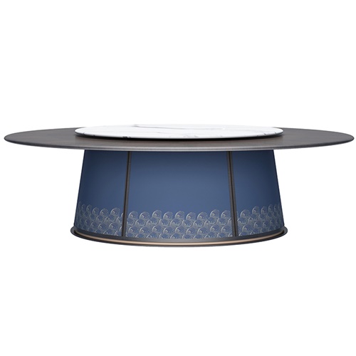 是由天然原料經(jīng)過特殊工藝,借助萬噸以上壓機(jī)壓制(超過15000噸),結(jié)合先進(jìn)的生產(chǎn)技術(shù),經(jīng)過1200℃以上高溫?zé)贫?,能夠?jīng)得起切割、鉆孔、打磨等加工過程的超大規(guī)格新型瓷質(zhì)材料。餐桌面或者是轉(zhuǎn)盤面采用巖板設(shè)計(jì),具有輕、耐磨、無滲透等優(yōu)點(diǎn)。