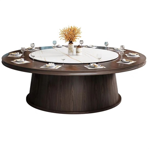 酒店包房新中式實(shí)木電動餐桌電動大圓桌飯店餐桌圖