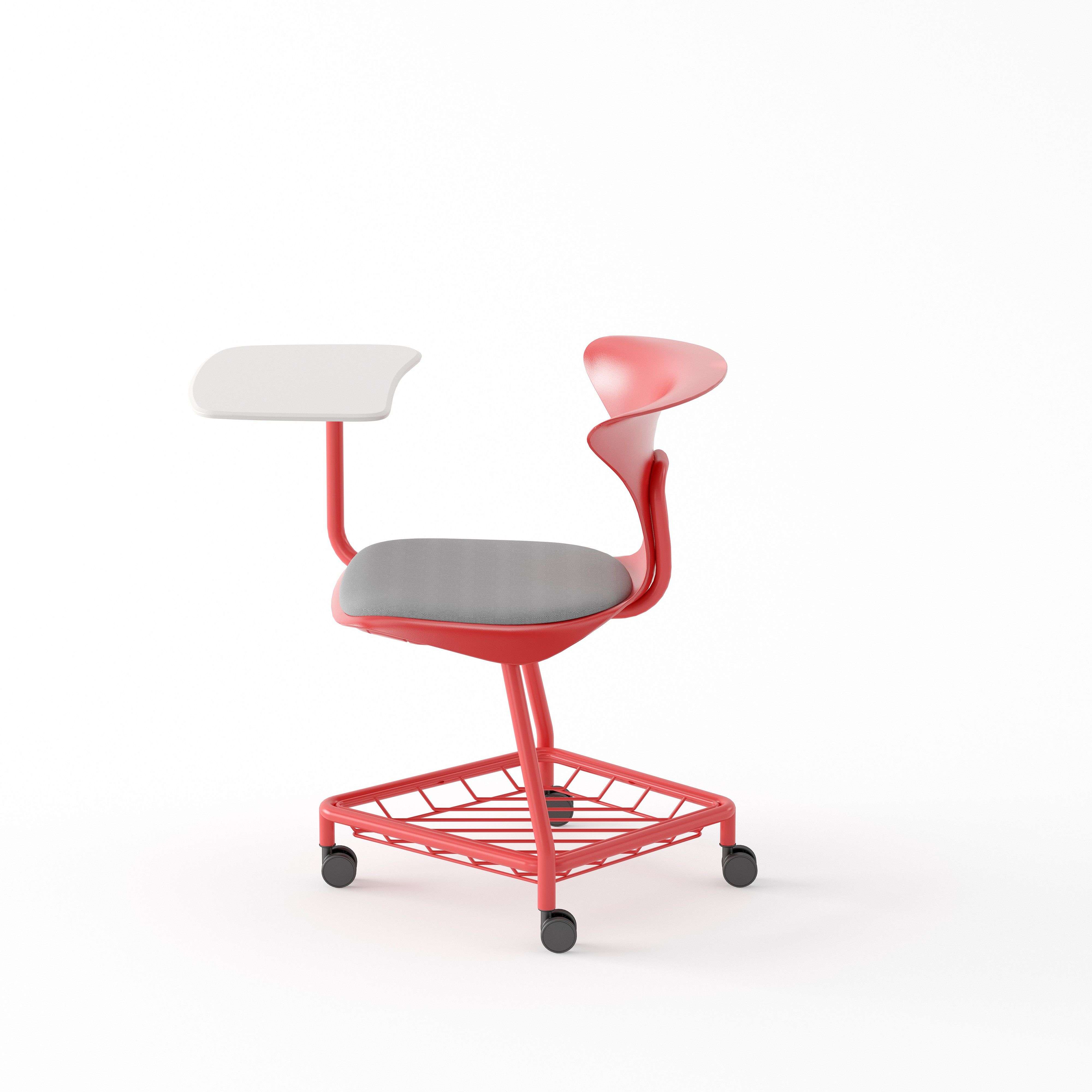 立足于學生健康坐姿的維護和學生之間交流研討的便利性,座背的環(huán)抱造型以及坐墊下翻設計,滿足超11種姿勢的支撐需求,鼓勵學生進行小組協(xié)作交流。