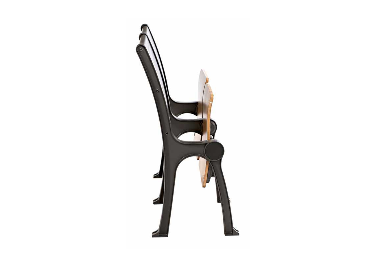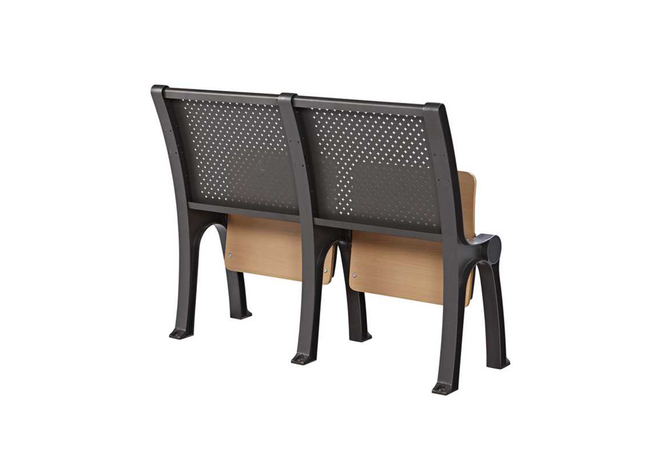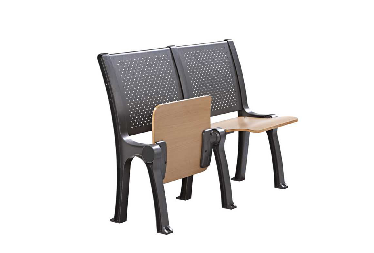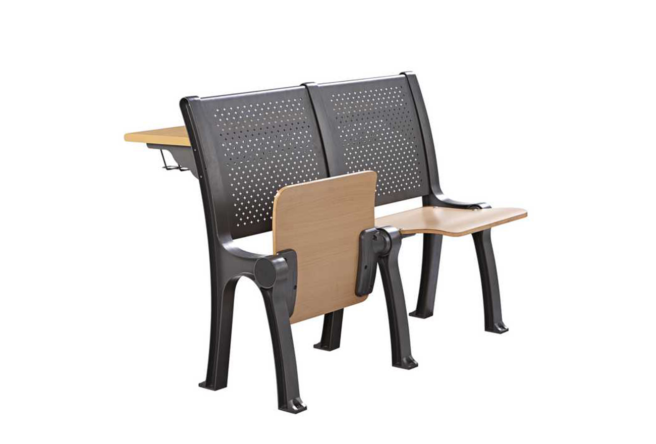 1、座:采用多層板經模具熱壓彎曲成型,符合人體工程學的形狀設計,面粘防火板,厚度為16mm,精制而成,牢固耐用,不褪色。