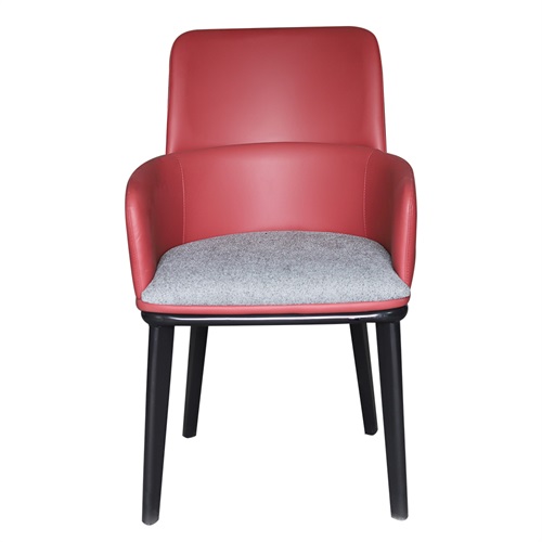 餐廳家具廠家為您展示咖啡廳現(xiàn)代簡(jiǎn)約紅色皮革實(shí)木扶手餐椅