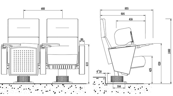 | 座椅深度:815±10mm,扶手高620±10mm:最小排距:900mm。 |