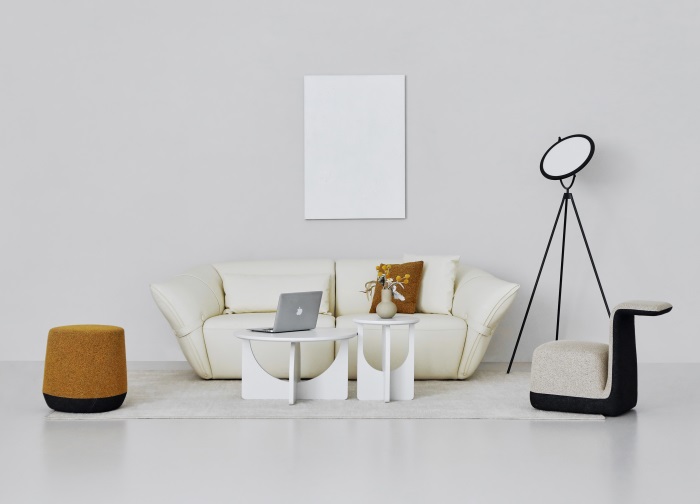 花朵盛開(kāi)時(shí),花瓣和花蕊會(huì)展開(kāi),設(shè)計(jì)師從花朵的外觀形象中提煉出花瓣盛開(kāi)時(shí)的姿態(tài),并應(yīng)用到沙發(fā)的設(shè)計(jì)中。沙發(fā)的扶手采用了往外張開(kāi)的形狀,類(lèi)似于花朵的花瓣展開(kāi)的姿態(tài),同時(shí)扶手上還有滾邊點(diǎn)綴,使得整個(gè)沙發(fā)看起來(lái)更加生動(dòng)有靈性。此外,沙發(fā)的扶手還可以作為靠背傾靠,滿足人們側(cè)坐時(shí)的需求。兩側(cè)拉扣的設(shè)計(jì)將外張的扶手往回收攏,猶如花瓣被花托收攏的形態(tài),使得產(chǎn)品設(shè)計(jì)更加完整,有生命力。