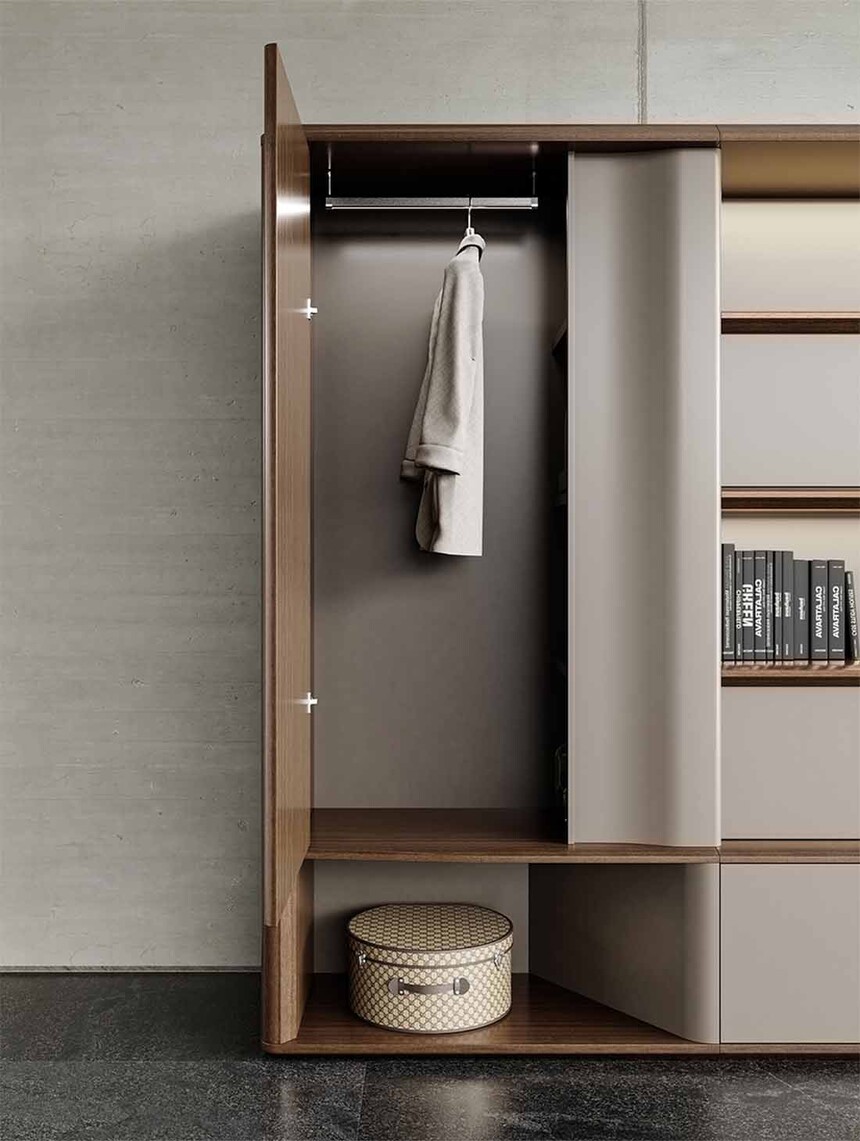 - 直紋胡桃+咖啡灰色 (附柜分左右,帶指紋鎖,智能升降線盒)