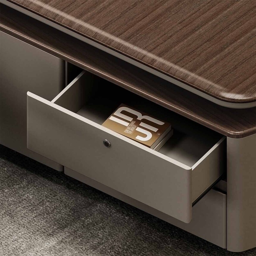 慕尚系列簡潔的設計演繹最本質的意式輕奢美學,設計線條流暢清晰。簡約而不失時尚,功能性與高顏值都得以兼顧。臺面以”超大L形組合“的設計理念打破傳統,將工作區(qū)完美劃分,臺腳以異形玻璃鋼設計,使外觀更加精致。展示使用者理智成熟的氣質,萬物兼容的氣度,打造現代時尚的高效商務辦公空間。