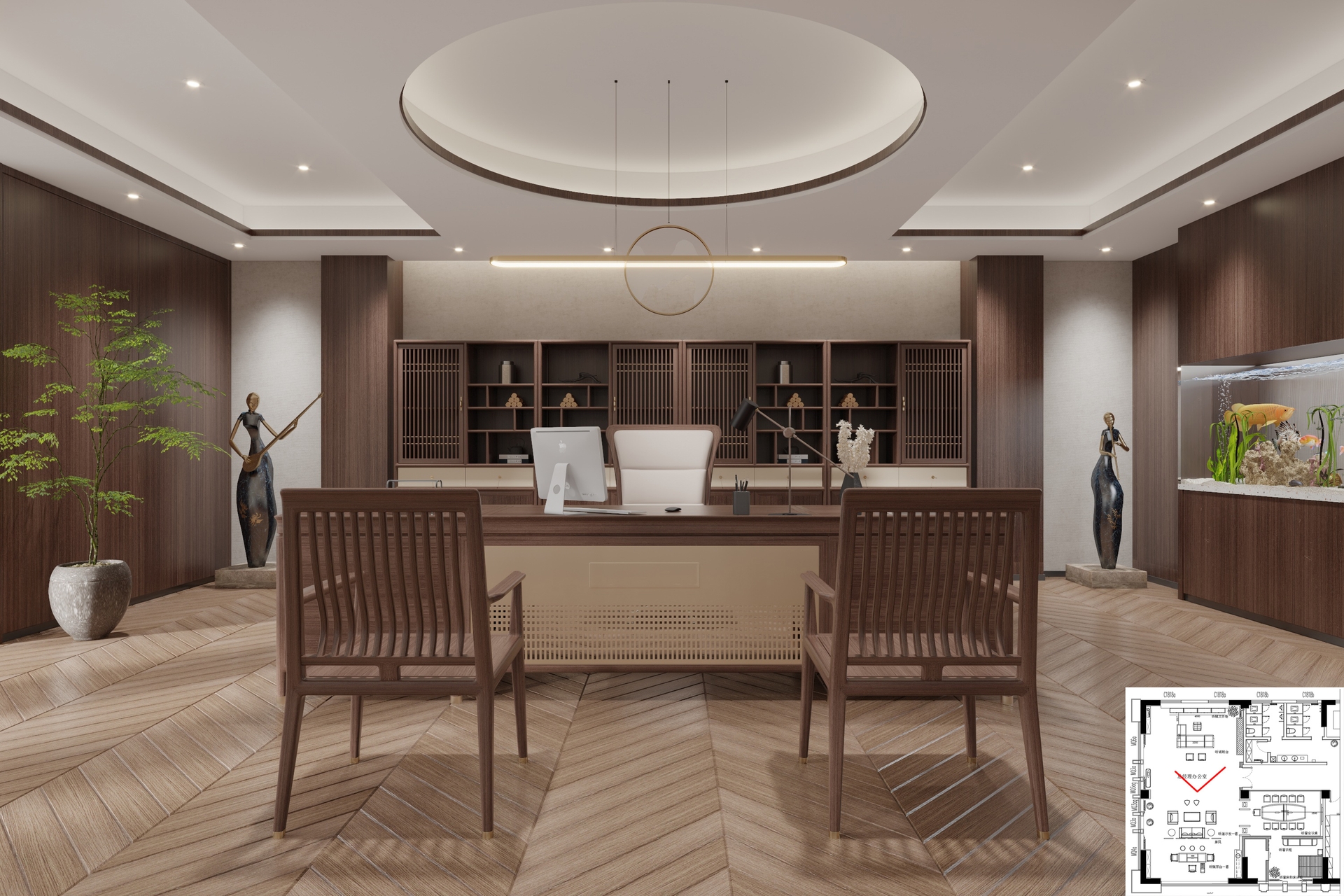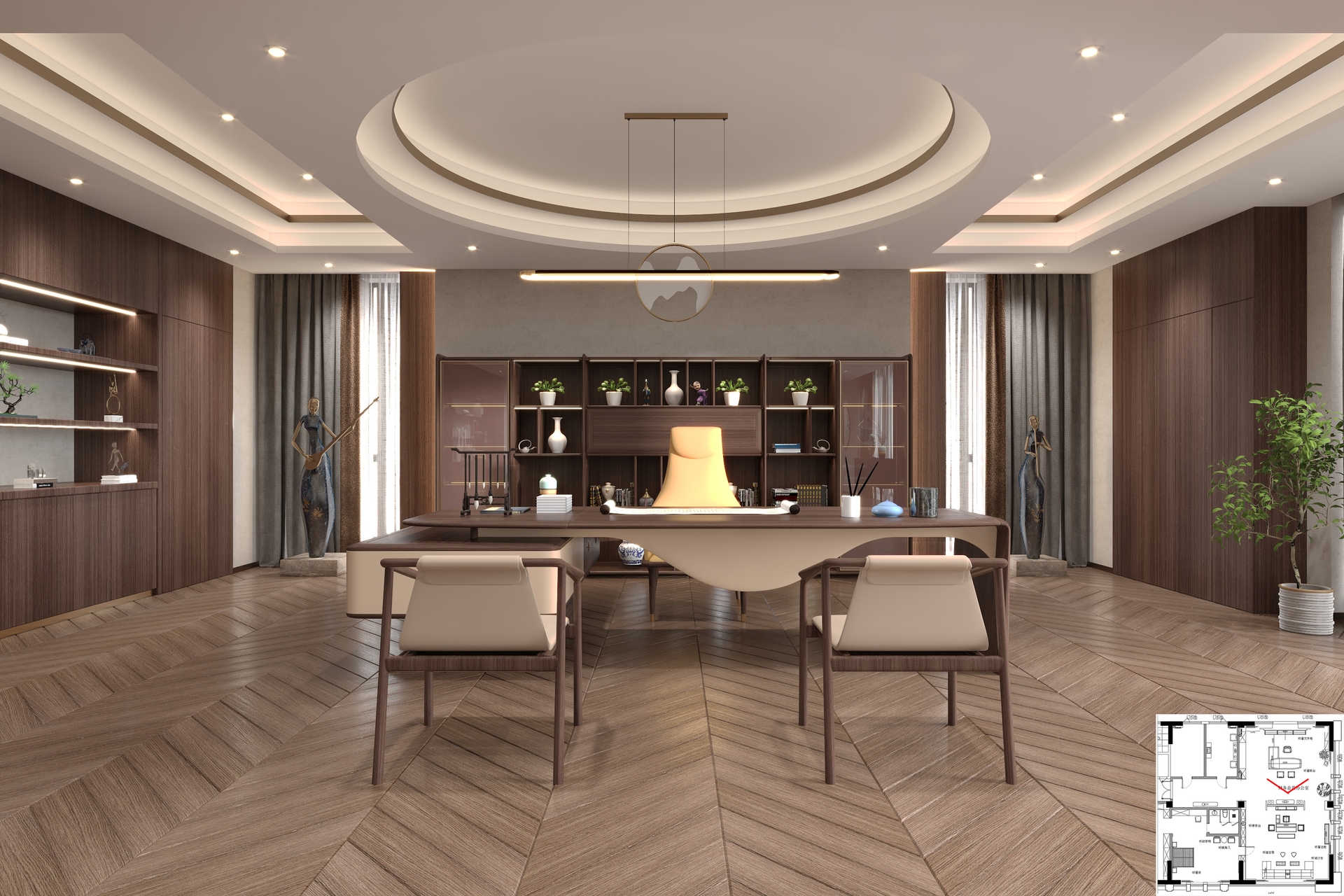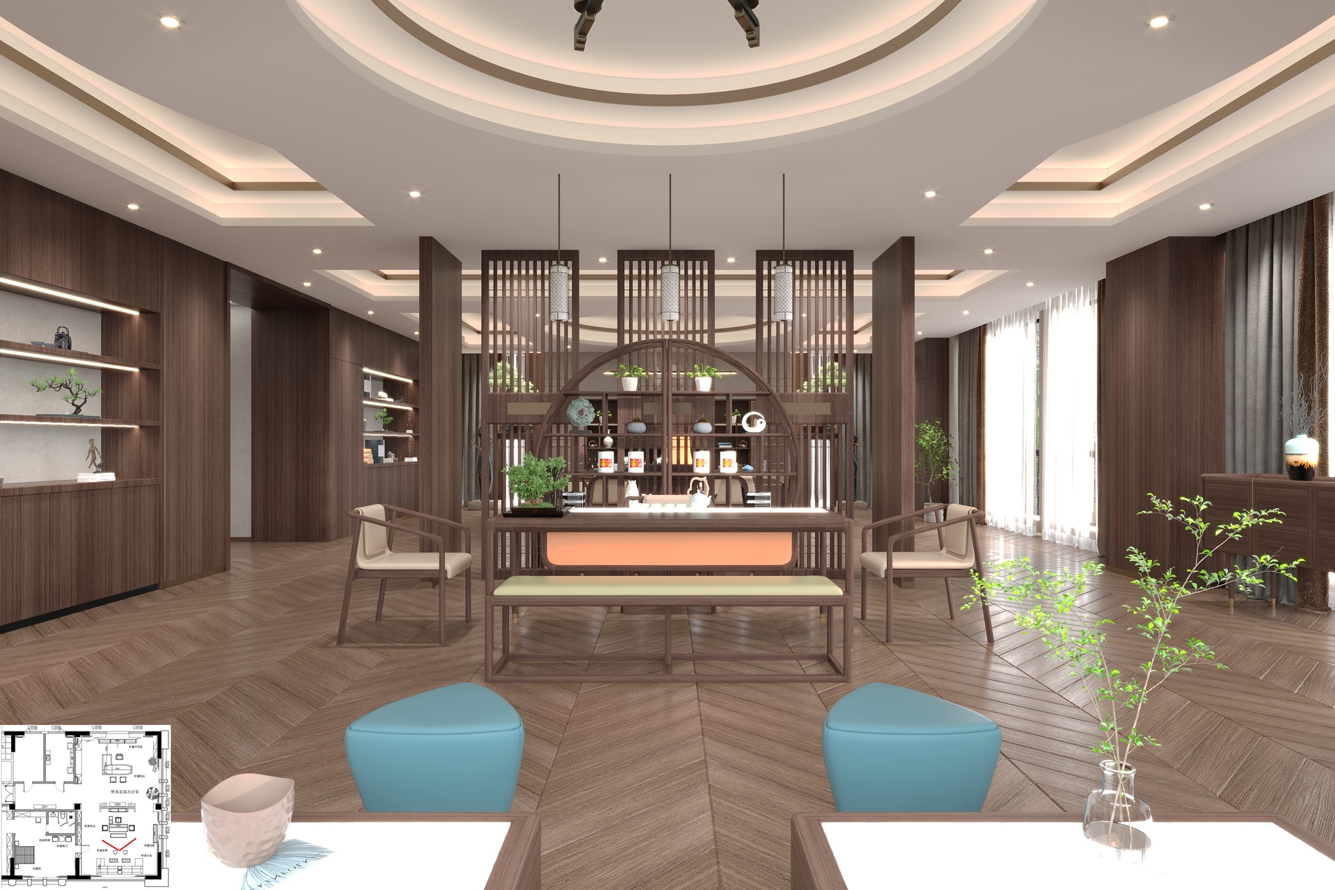 禪意極簡中式辦公案例