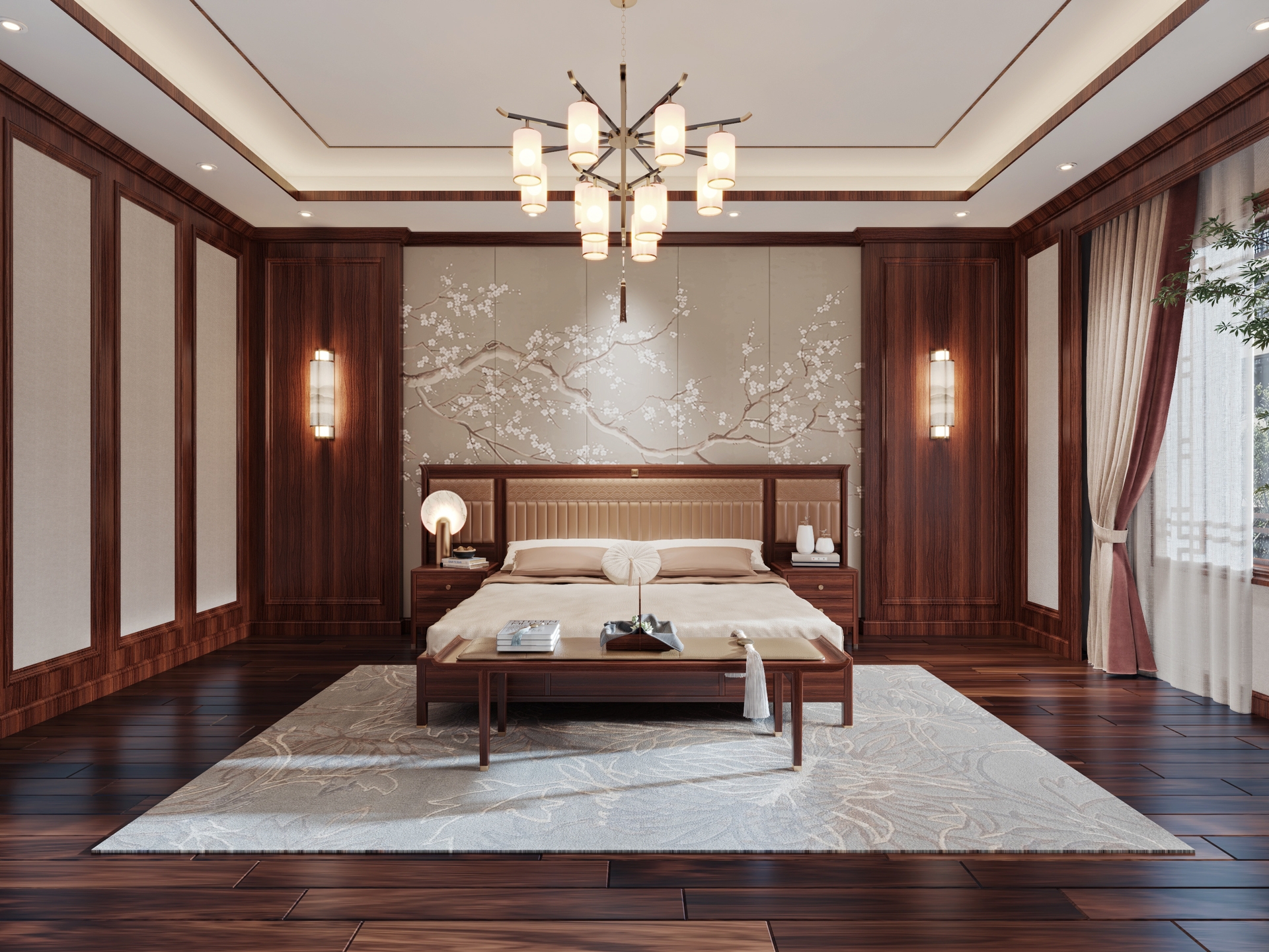 臥室則注重舒適與靜謐,新中式床具以低調(diào)的木質(zhì)紋理和簡潔的雕刻展現(xiàn)溫馨質(zhì)感。配以素雅的窗簾和裝飾,創(chuàng)造出休憩與思考的理想之所。